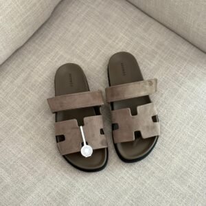 HERMES Designer Cowhide Leather Wool Cluggette Slipper