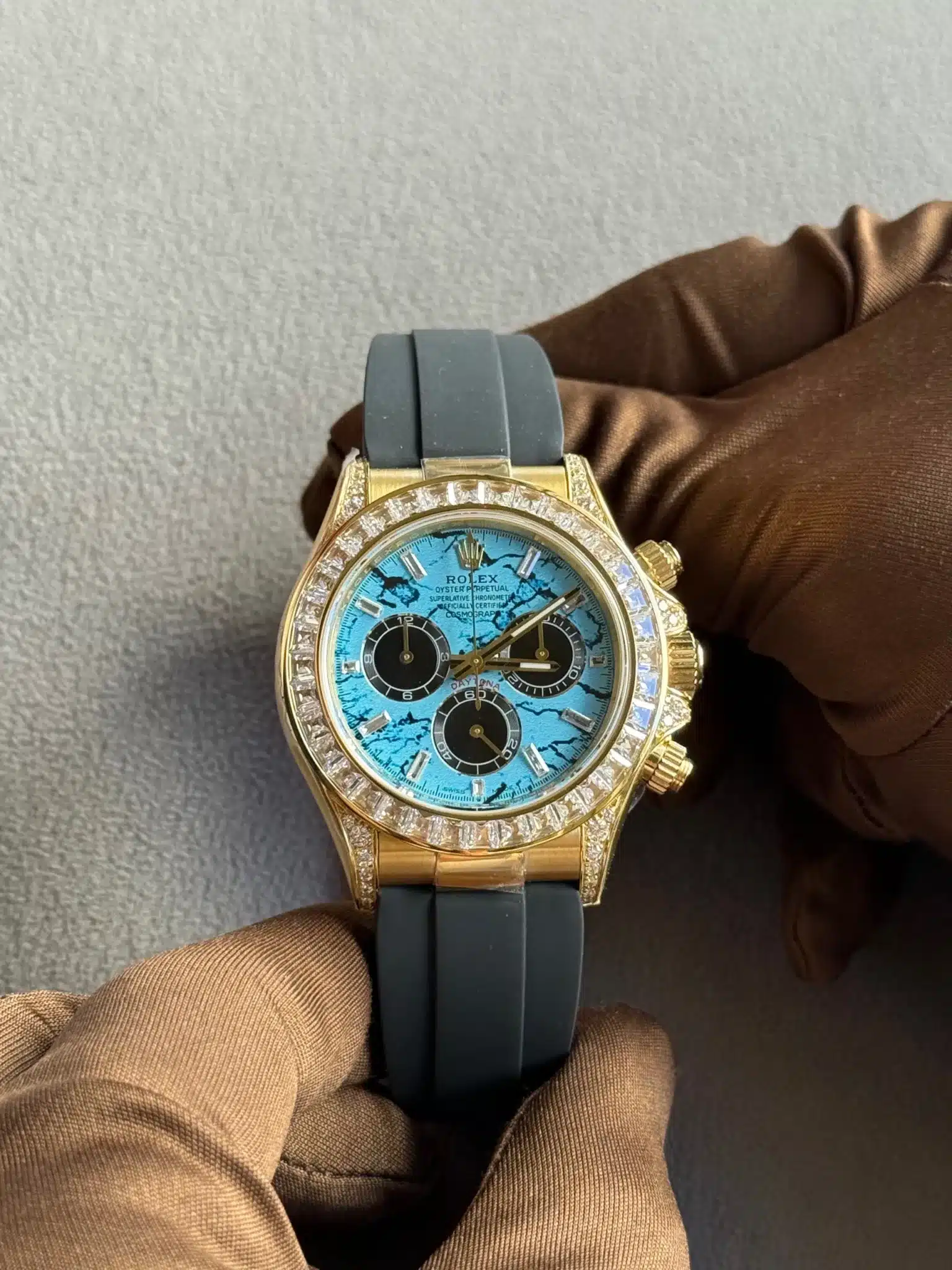 126538TBR Yellow Gold Turquoise Stone Dial Diamond Bezel Oysterflex (2025) – copywatchesdubai.com