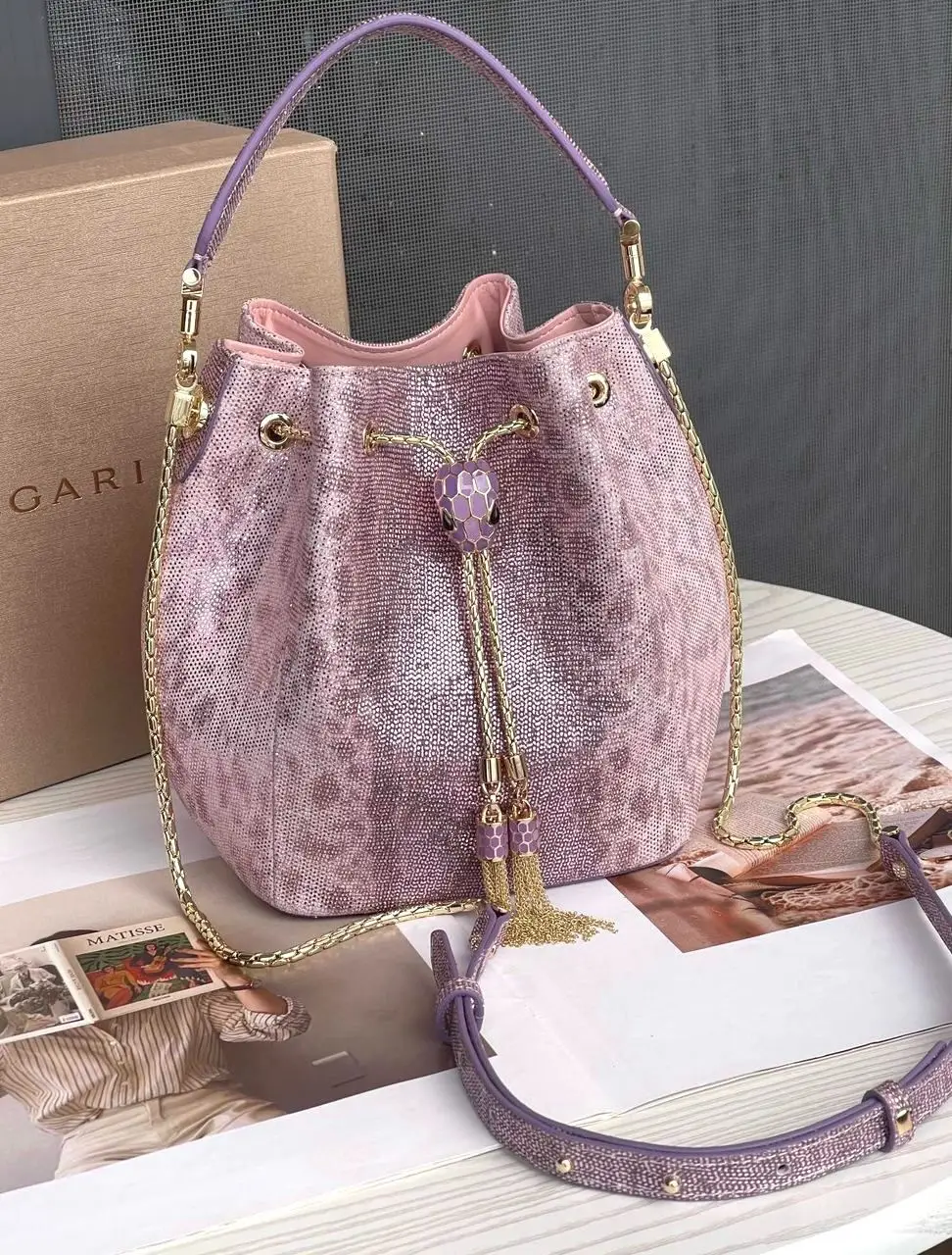 Closure: Iconic Serpenti motif clasp in polished gold or palladium finish, set with a gleaming cabochon stone (e.g., turquoise, onyx, or amethyst).