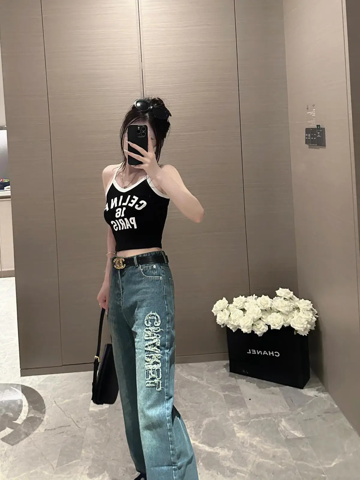Embrace an audacious blend of timeless elegance and rebellious edge with these CHANEL Distressed Logo Decorated Jeans. Meticulously crafted from a premium, rigid denim, these jeans offer a superior fit that molds to your body over time, ensuring a truly personalized silhouette.
