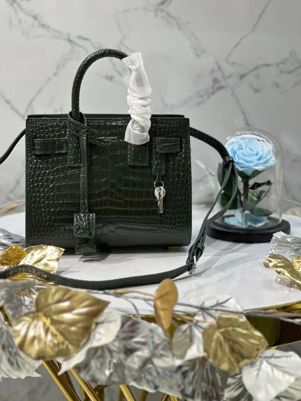 Be the first to review “Design Black Croc Embossed Leather Nano Classic Sac De Jour Tote – Dubai Fashion LUX”