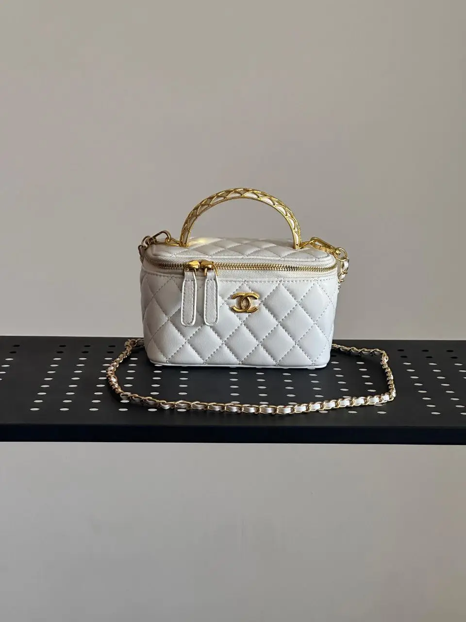 Design Chain Vanity Mini 2way Shoulder crossbody Bag Lambskin White GHW – Dubai Fashion LUX
