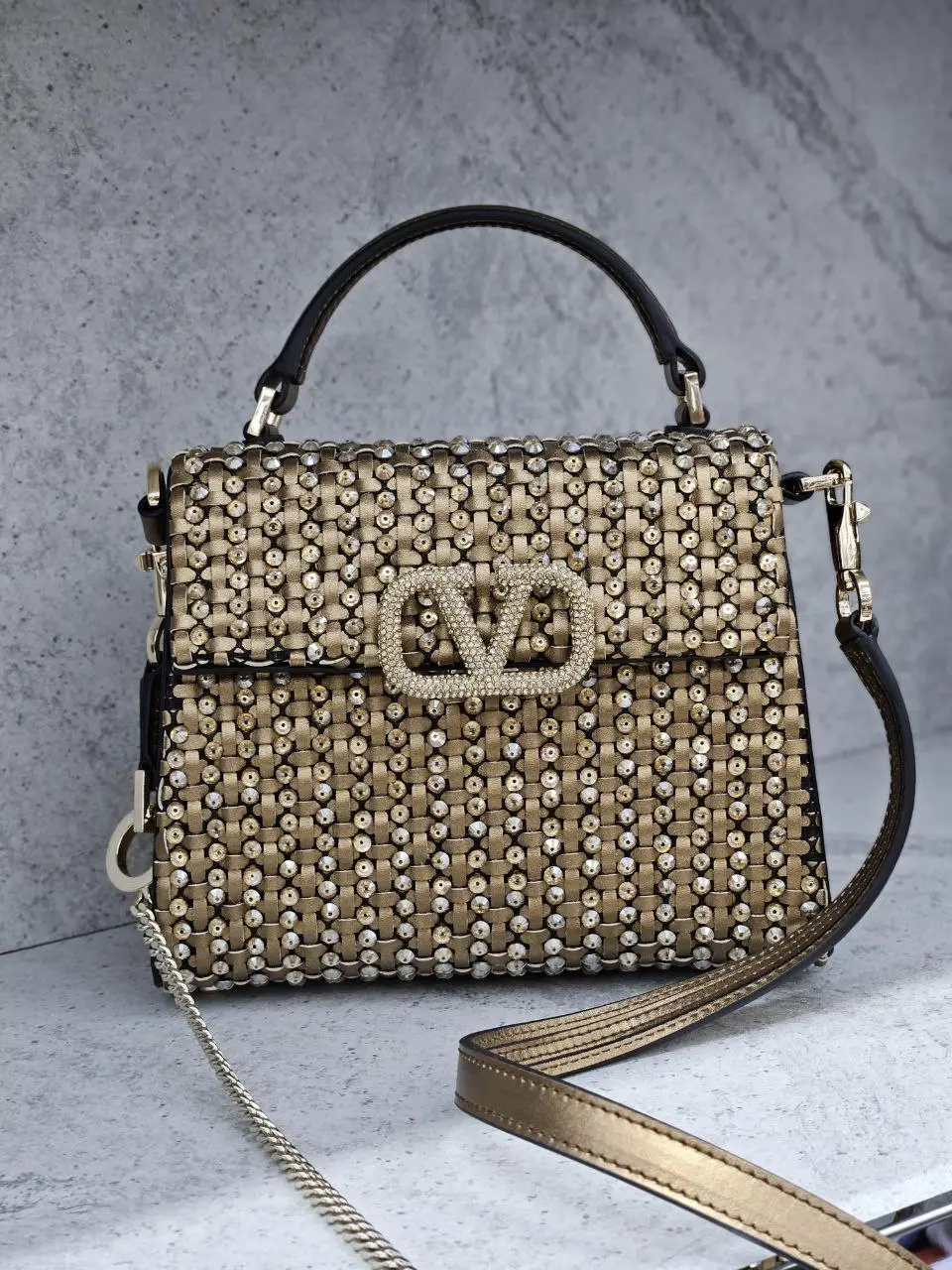 Design Design MINI VSLING HANDBAG IN WOVEN METALLIC NAPPA LEATHER