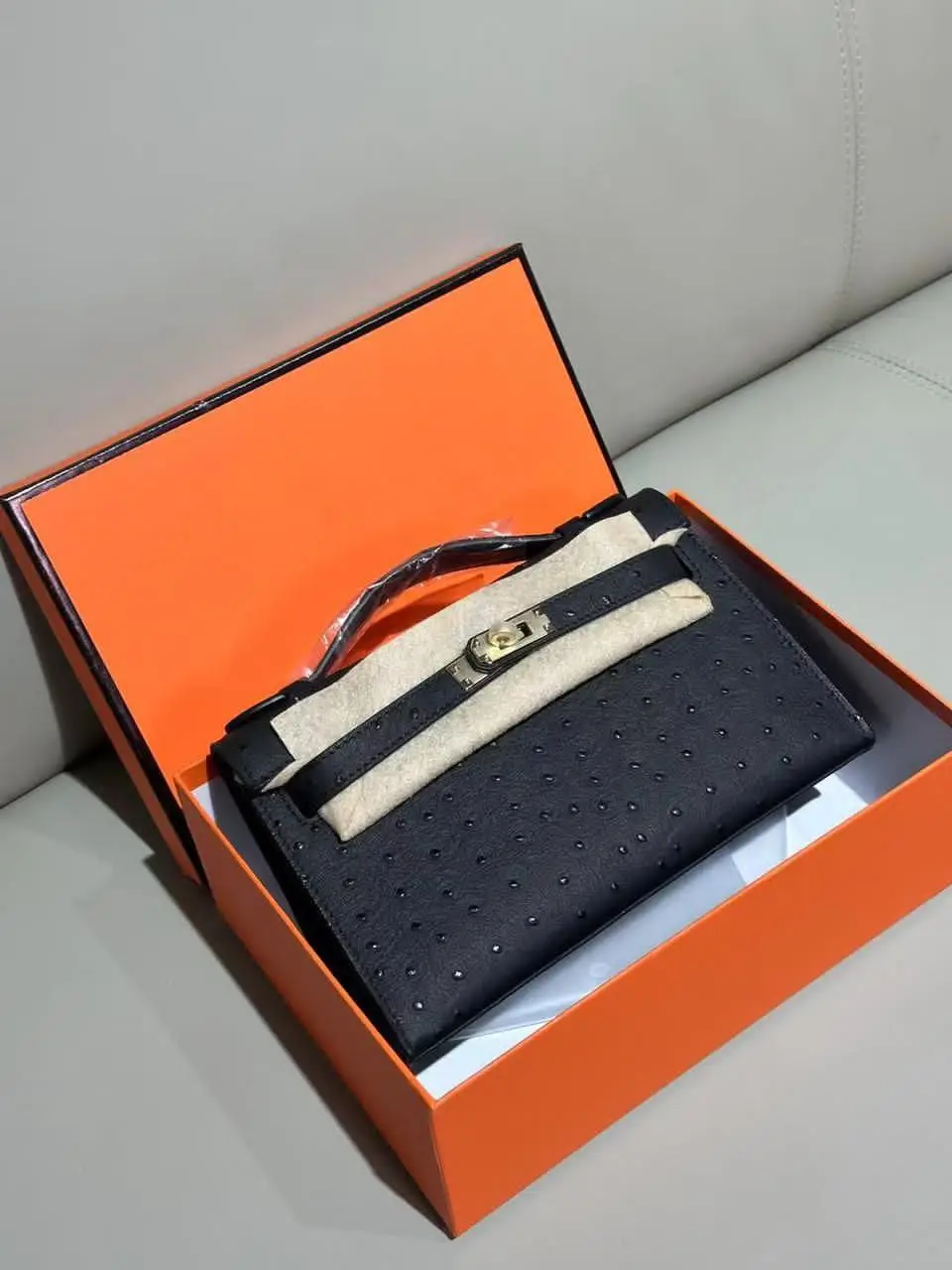 Design Kelly Pochette Noir (Black) Ostrich Gold Hardware GHW – Dubai Fashion LUX