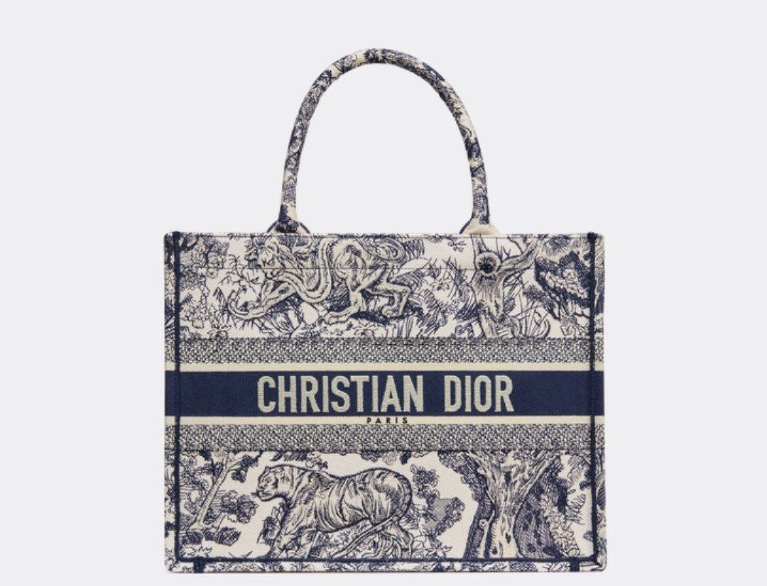 Design MEDIUM BOOK TOTE Ecru and Blue Toile de Jouy Embroidery (36 x 27.5 x 16.5 cm) – Dubai Fashion LUX
