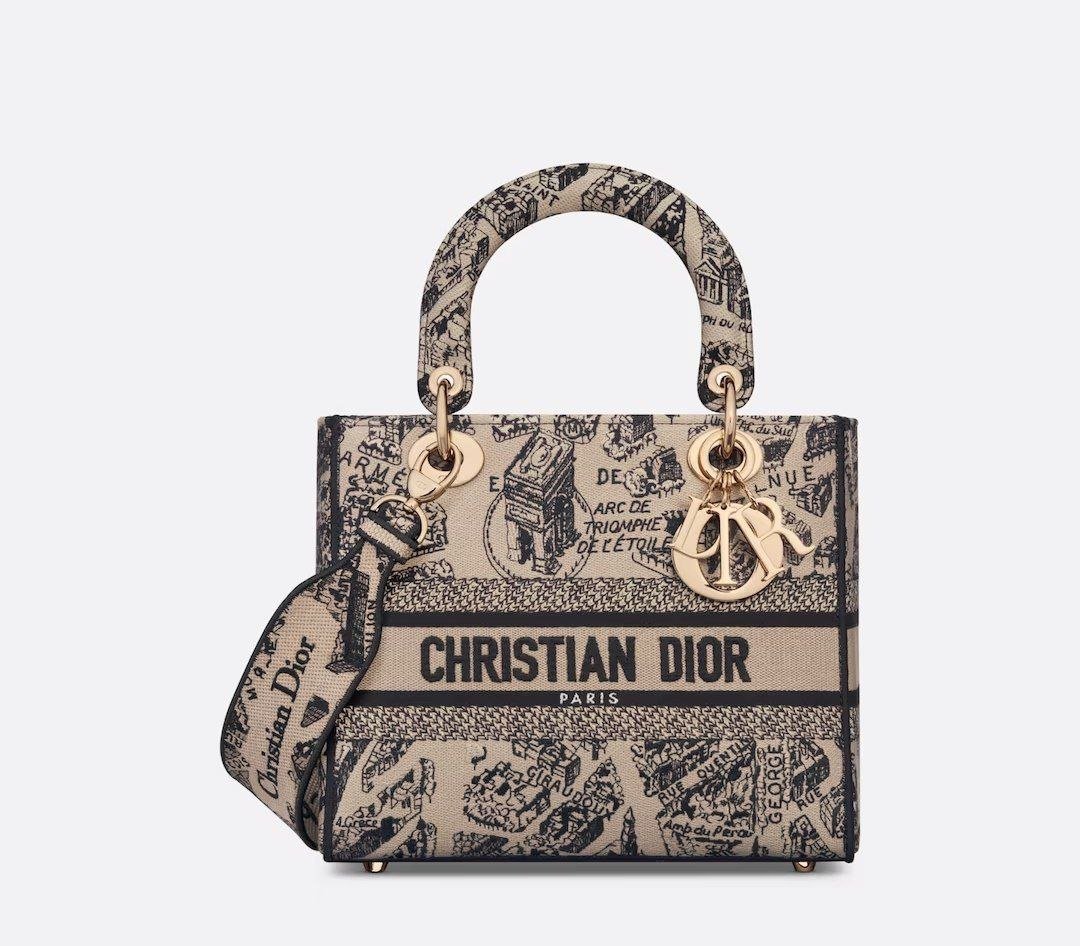 Design MEDIUM LADY D-LITE BAG Beige and Black Plan de Paris Embroidery – Dubai Fashion LUX
