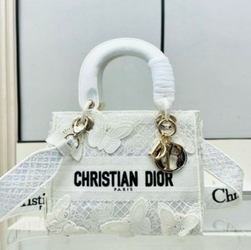 Design MEDIUM LADY D-LITE BAG White D-Lace Butterfly Embroidery with Macramé Effect – Dubai Fashion LUX