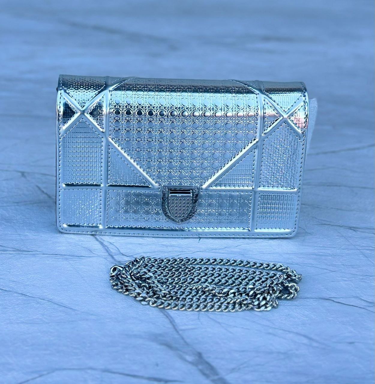 Design Metallic Silver Micro Cannage Leather Wallet On Chain Clutch Bag – Dubai Fashion LUX