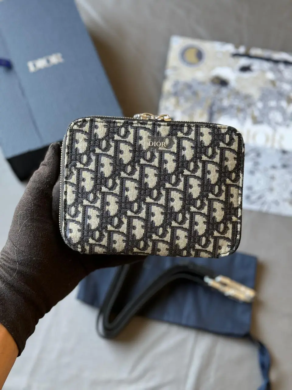 Design Pouch with Strap Shoulder Bag Beige Black Oblique Jacquard – Dubai Fashion LUX