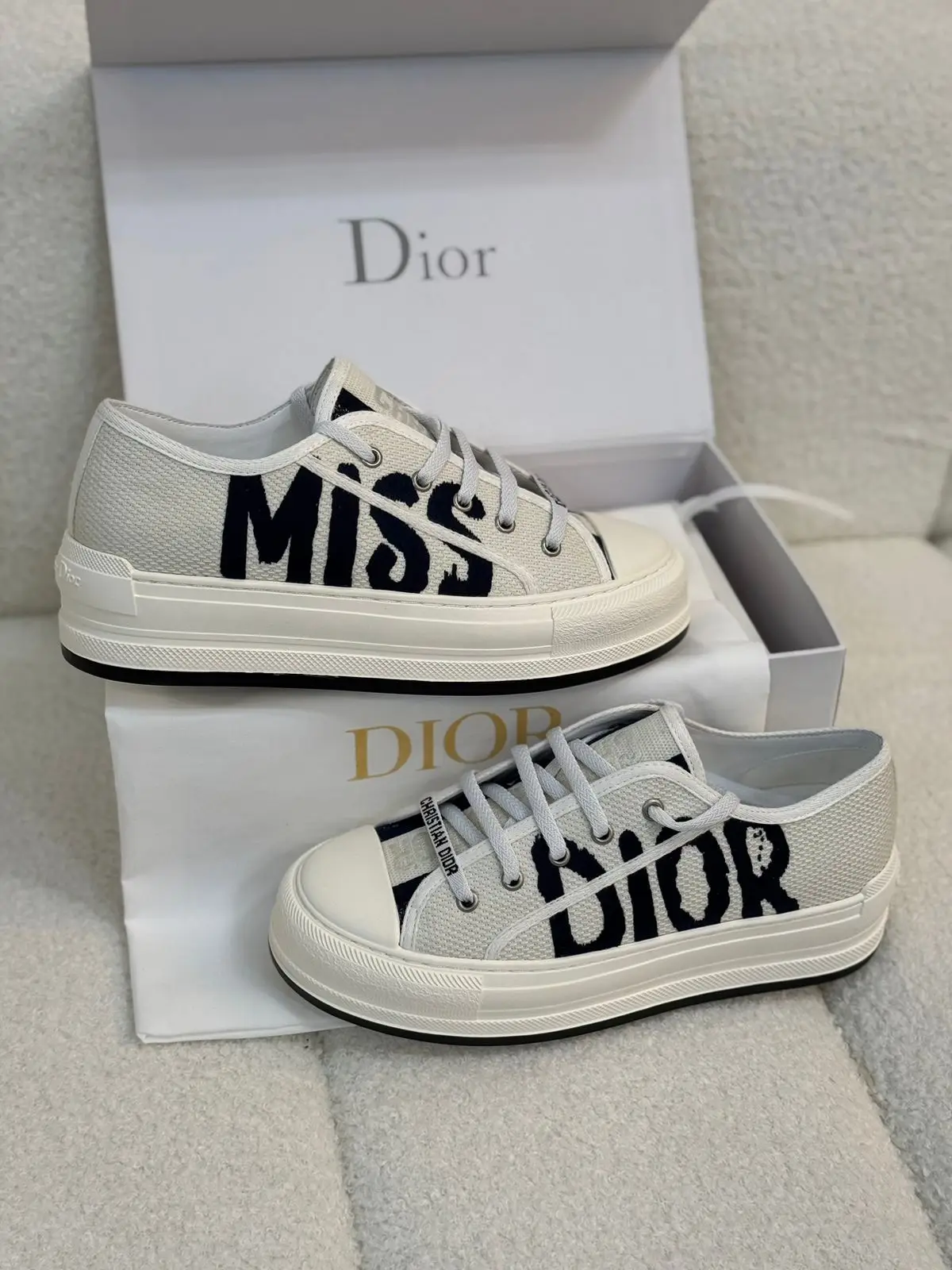 The iconic “Walk n’ Dior” motif is elegantly embroidered along the side panel, a subtle yet definitive signature of the House’s commitment to detail. Featuring a refined low-top silhouette, it is engineered for both exceptional comfort and versatile style. The cushioned insole and flexible rubber sole ensure all-day ease, making them as practical for a day in the city as they are for a sophisticated casual ensemble.
