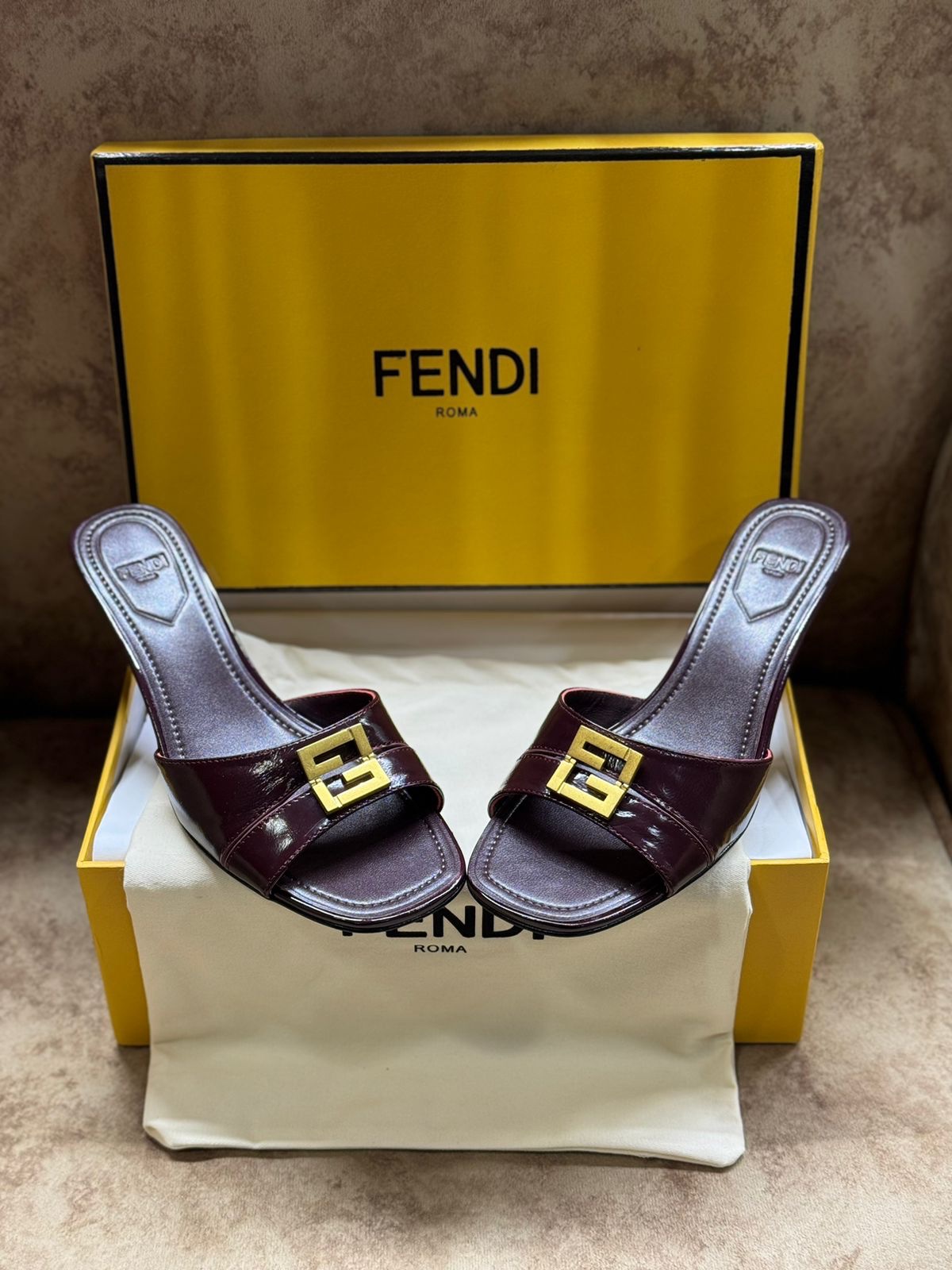 Embrace timeless Italian luxury with the FENDI Burgundy FFold Leather Sandal. Meticulously crafted from the finest burgundy leather, this iconic sandal is a masterpiece of modern elegance. The signature FFold strap, featuring the unmistakable interlocking ‘F’ motif, elegantly wraps the foot, creating a flattering and secure fit.