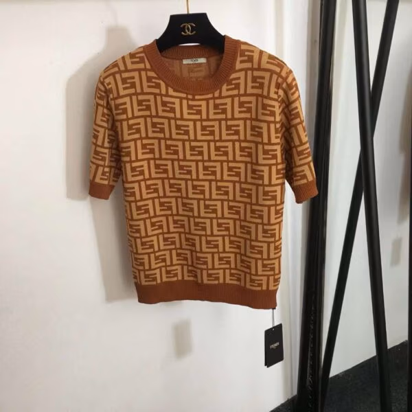 Embody the pinnacle of Italian luxury with the FENDI Monogram FF Stretch-Knit T-Shirt. Meticulously crafted for the discerning individual, this is not merely a t-shirt; it is a statement of refined, modern elegance. The iconic FF motif, a symbol of Roman heritage, is subtly integrated into a sophisticated jacquard knit fabric, offering a texture that is as tactile as it is visually striking.