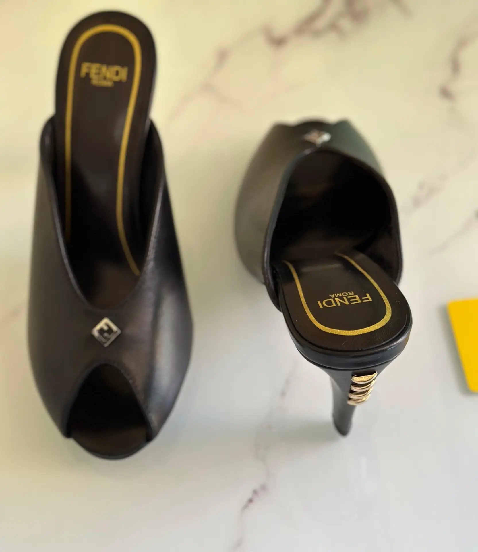 Embrace an icon of modern sophistication with the FENDI Peep Toe Pumps. Meticulously crafted in Italy from the finest supple leather, these heels are a testament to FENDI’s unwavering commitment to master quality. The elegantly sculpted silhouette features a discreet peep toe, offering a tantalizing glimpse of skin for an allure that is both powerful and poised.