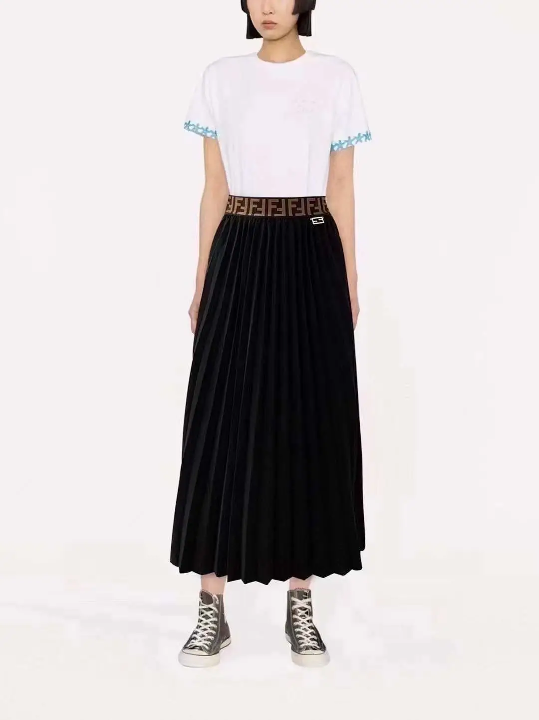 Embrace timeless elegance with the FENDI Pleated Black Maxi Skirt, a masterpiece of Italian craftsmanship. Meticulously recreated in super master quality, this skirt captures every exquisite detail of the original design. Crafted from a luxuriously fluid and lightweight fabric, the skirt features precision-pressed, razor-sharp pleats that create a dynamic, flowing silhouette with every movement.