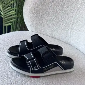 Elevate your summer style with the LOUIS VUITTON Trainer Mules Sandals—a perfect fusion of luxury and comfort. Crafted with premium materials and iconic LV detailing, these sandals feature a sleek mule design with a cushioned footbed for all-day ease. The bold Trainer silhouette adds a sporty-chic edge, while the signature monogram accents ensure timeless sophistication. Ideal for casual outings or elevated leisure, these sandals are a must-have for fashion-forward individuals.