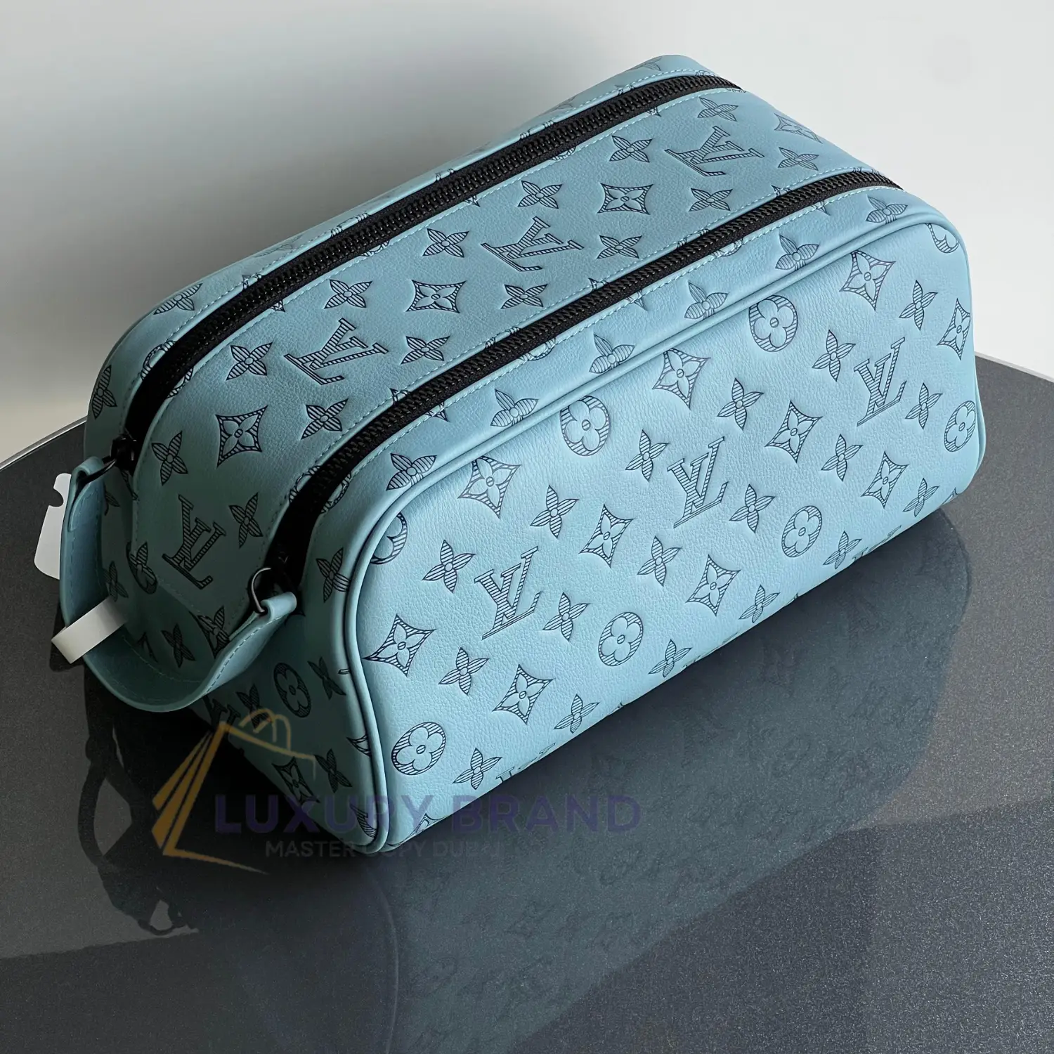 Its spacious interior is lined with easy-to-clean microfiber, featuring a separate zip pocket to securely organize smaller items such as jewelry or accessories. The refined details are unmistakably Louis Vuitton: an adjustable leather tab for versatile carrying, a sturdy metal zipper pull engraved with the LV initial, and the brand’s signature heat-stamped gold-tone hardware. More than a simple pouch, it is a statement of refined taste, ensuring your grooming routine is met with unparalleled style and sophistication, wherever your journey takes you.